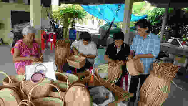 งานหัตถกรรมจักสานดูเหมือนจะเป็นส่วนหนึ่งของคนไทยมานับตั้งแต่โบราณกาล คนไทยรู้จักการประดิษฐ์เครื่องจักสานนำมาใช้ประโยชน์ในชีวิตประจำวันหลายๆ ชนิด เช่น กระจาด กระบุง ตะกร้า เป็นต้น และได้สืบทอดงานฝีมือสู่ลูกหลานเรื่อยมา ดังนั้น การประดิษฐ์ผลิตภัณฑ์จากผักตบชวาจึงเป็นที่ไม่ใช่เรื่องยากเย็นสำหรับคนไทยที่ว่างจากการทำไร่ ทำนา หันมาทำงานจักสาน และได้สืบทอดงานฝีมือสู่ลูกหลานเรื่อยมา