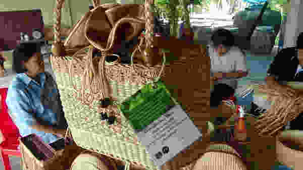 ในช่วงนั้นขณะวิ่งรถไประหว่างทาง ก็ไปเห็นผักตบชวาที่อยู่เต็มคลอง จึงมีแนวคิดในการที่จะนำผักตบชวามาทำงานจักสาน เนื่องจากตนเองนั้นมีฝีมือในงานจักสานที่สืบทอดกันมาจากรุ่นสู่รุ่นที่เว้นว่างจากการทำนานทำสวนก็สานกระบุงตะกร้าเก็บไว้ใช้งาน